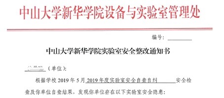 设备处发放的实验室安全整改通知书(示例)