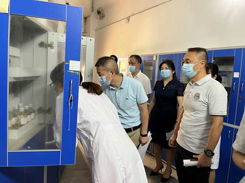 检查组到校后直接赶赴中区实验楼,对各教学和科研实验室、危险化学品仓库进行了现场检查,并重点检查了suncitygroup太阳集团危险化学品“五双”管理措施的落实情况和危化品仓库安全设施的建设情况,仔细查看了危险化学品使用及出入库台账。设备与实验室管理处苏宁处长向检查组详细介绍了suncitygroup太阳集团的实验室安全管理工作情况及危险化学品管理的各项措施。
