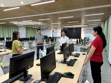 郝登峰书记(右二)在会计学院实验室指导工作