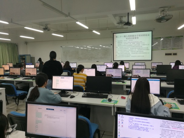 2019年4月12日晚上,我处实验中心协助校团委在两校区共6间机房中顺利完成了学校第二十一期入党积极分子培训班共300多名入党积极分子结业考试。