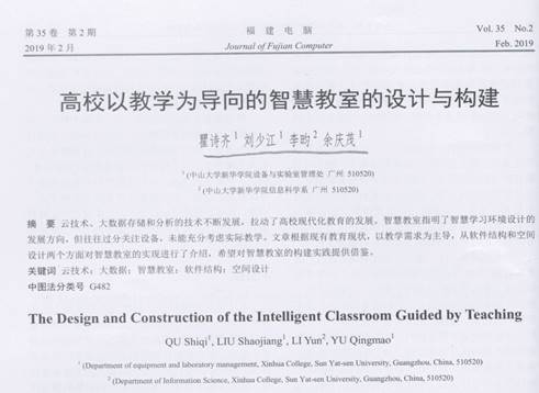 3.瞿诗齐发表了一篇题为《高校以教学为导向的智慧教室的设计与构建》的论文。